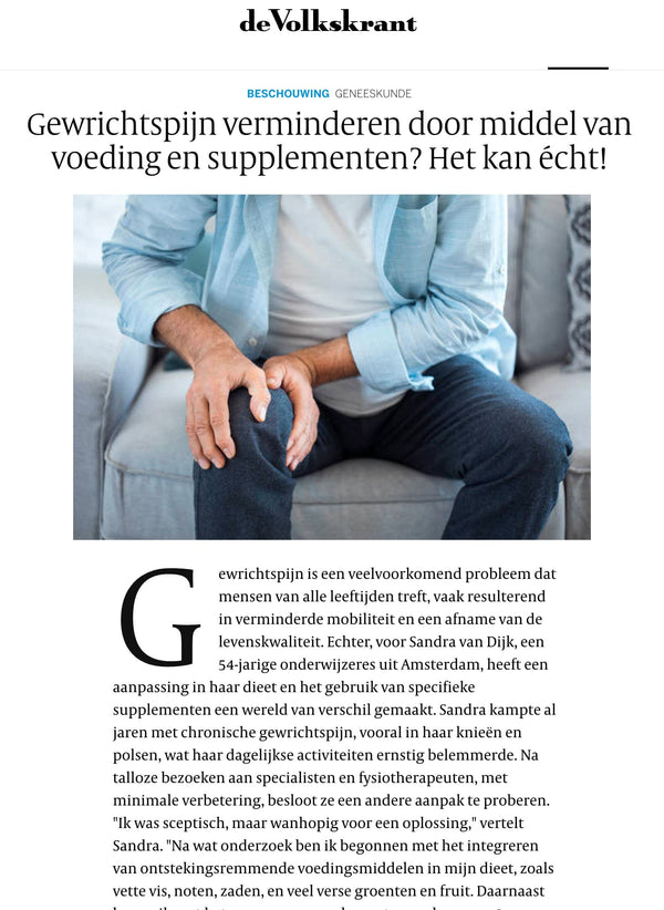 Ik heb het product geprobeerd om mijn gewrichtspijn te verlichten en ik ben erg blij met de resultaten. Al na een paar weken voelde ik een aanzienlijke verbetering en kon ik weer vrij bewegen zonder pijn. Ik gebruik het product nu vijf maanden en mijn pijn is vrijwel volledig verdwenen. Dikke aanrader dus!