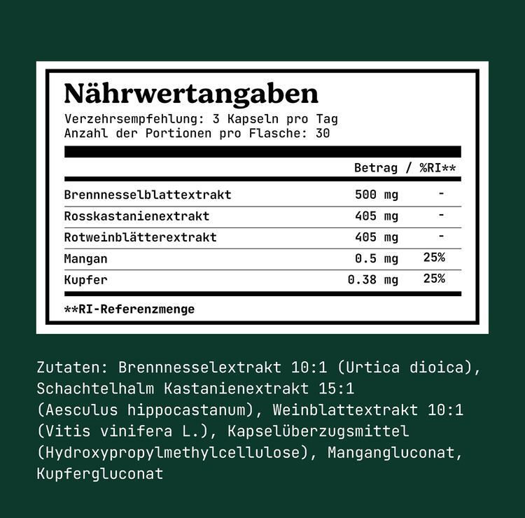 Unterstützt gesunde Venen, verbessert die Durchblutung und bietet antioxidativen Schutz.